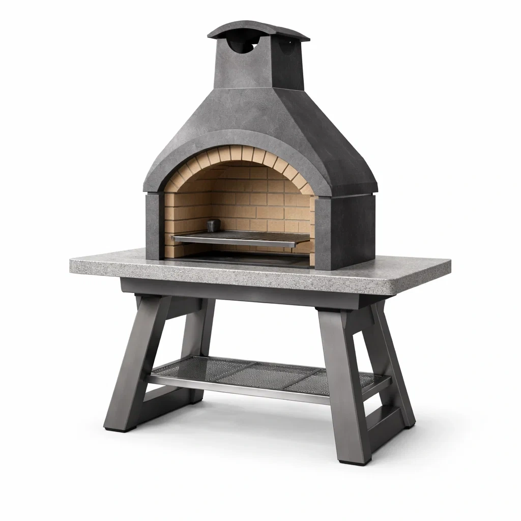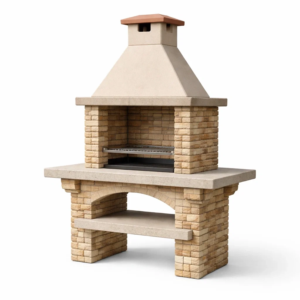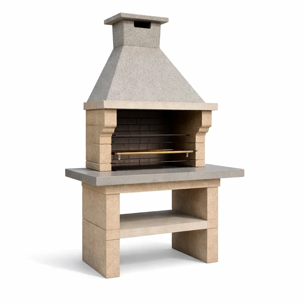 Barbecue extérieur en béton réfractaire avec hotte et étagères intégrées