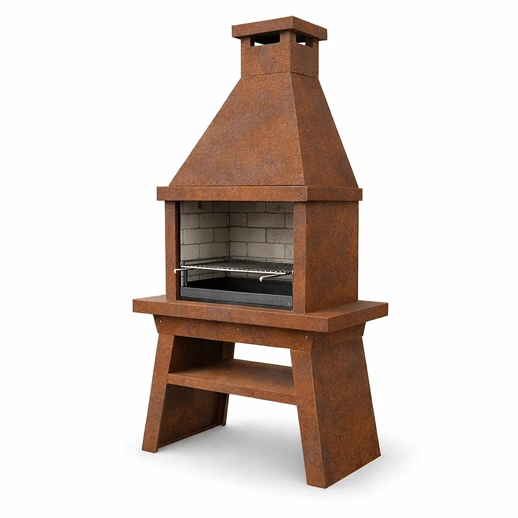 Barbecue extérieur en acier corten avec foyer réfractaire