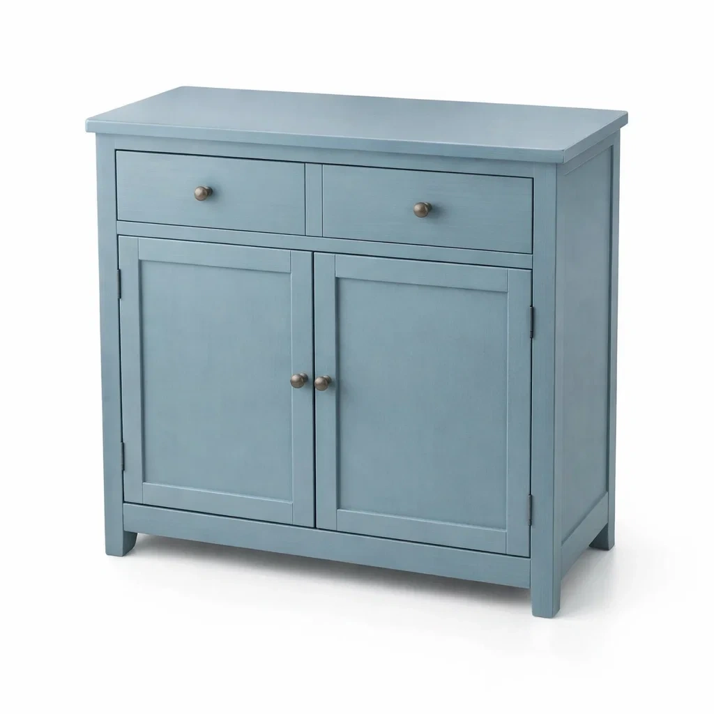 Buffet en bois mdf bleu avec 2 tiroirs et 2 portes 90x40x85 cm