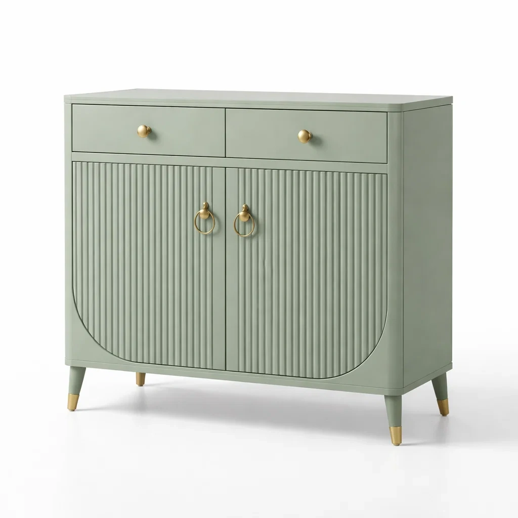 Buffet vert en bois mdf avec 2 portes 2 tiroirs et poignées en métal